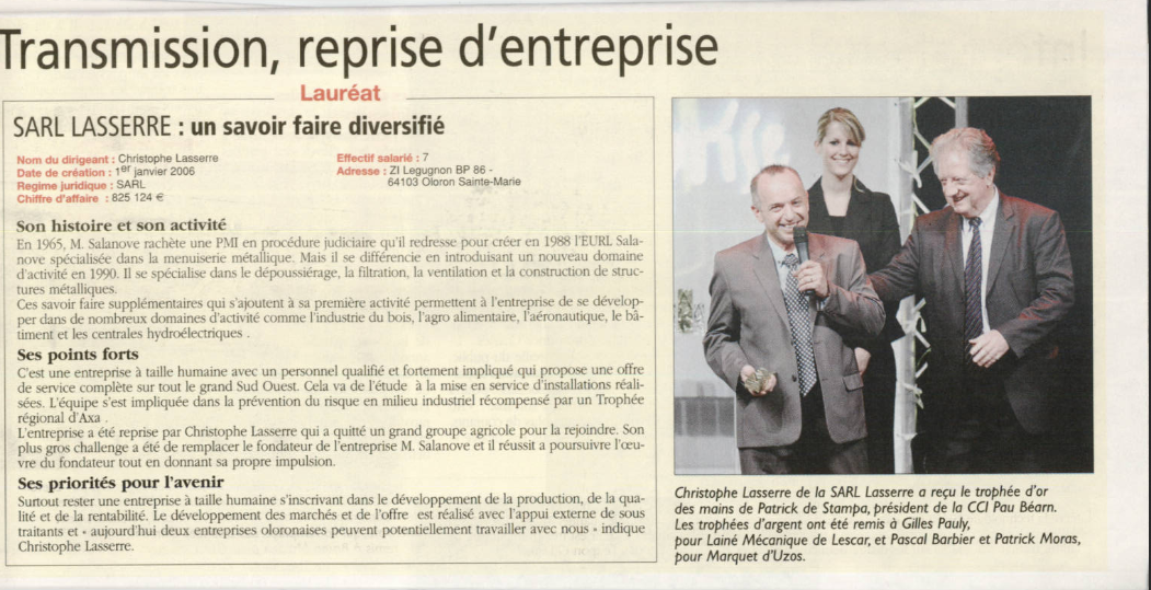Nous sommes Lauréat dans la catégorie "Reprise d'entreprise" !